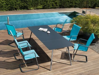 Der lässige Retro-Look des Programm SÄNTIS bringt eine Prise Nostalgie in Ihren Garten und wird von Schaffner zu 100% in der Schweiz hergestellt. Die Schaffner AG spezialisiert sich bereits über Generationen hinweg auf die Herstellung hochwertiger, wetterfester Gartenmöbel.
