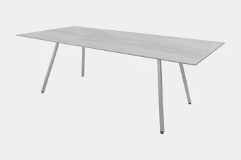 Die charakteristische Form der Beine des Gartentisch FOREST von Fast Spa wurde vom mathematischen Zeichen der Quadratwurzel inspiriert. Die Tischplatte kann wahlweise quadratisch, rechteckig oder rund gewählt werden und ist auch mit einer gesprenkelter Oberfläche erhältlich. Made in Italy.