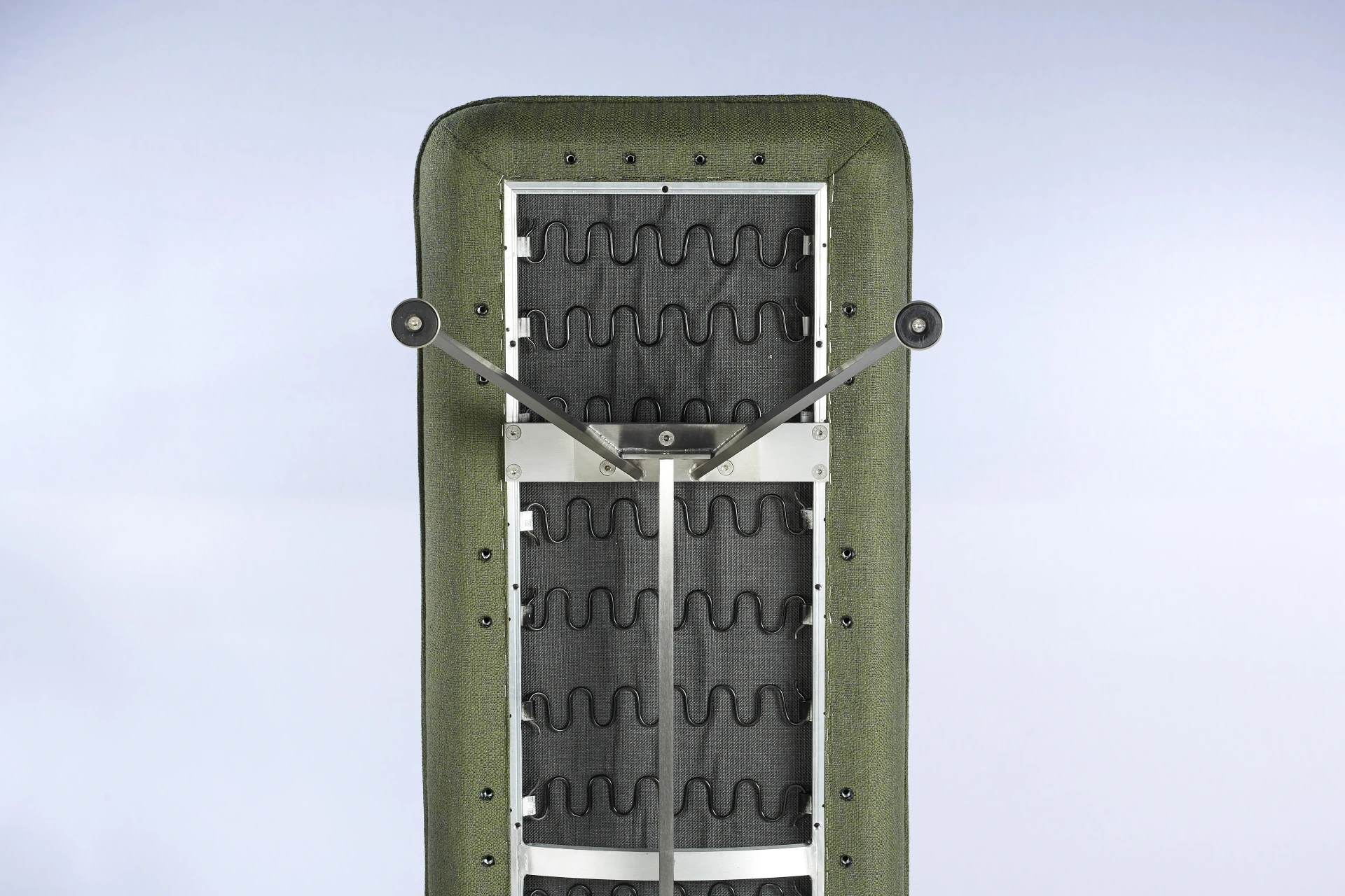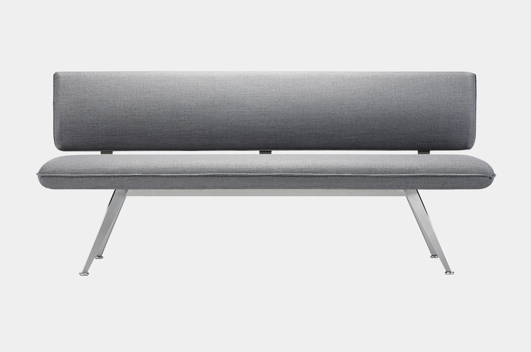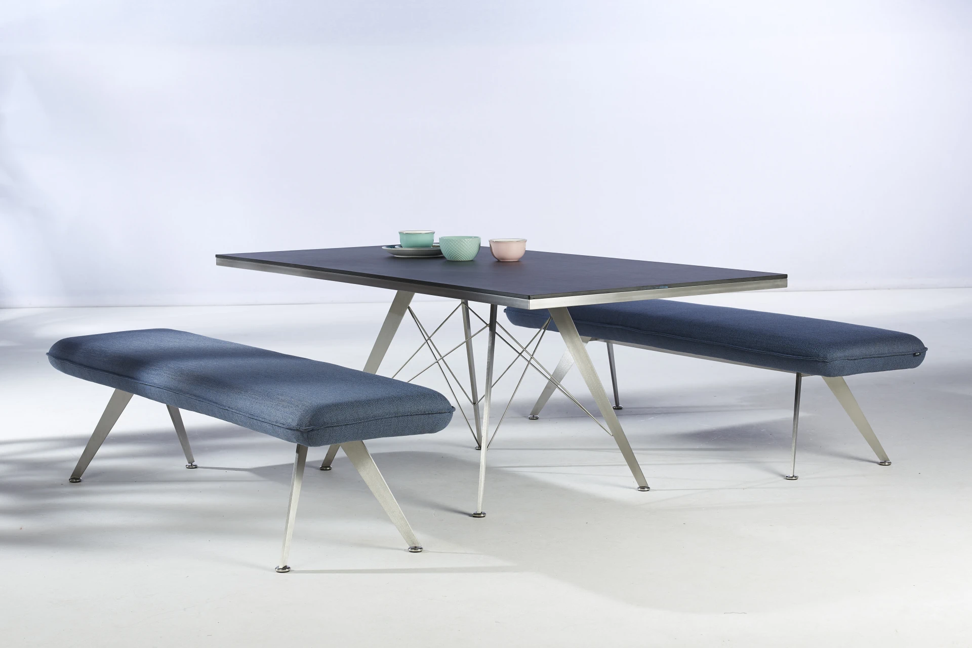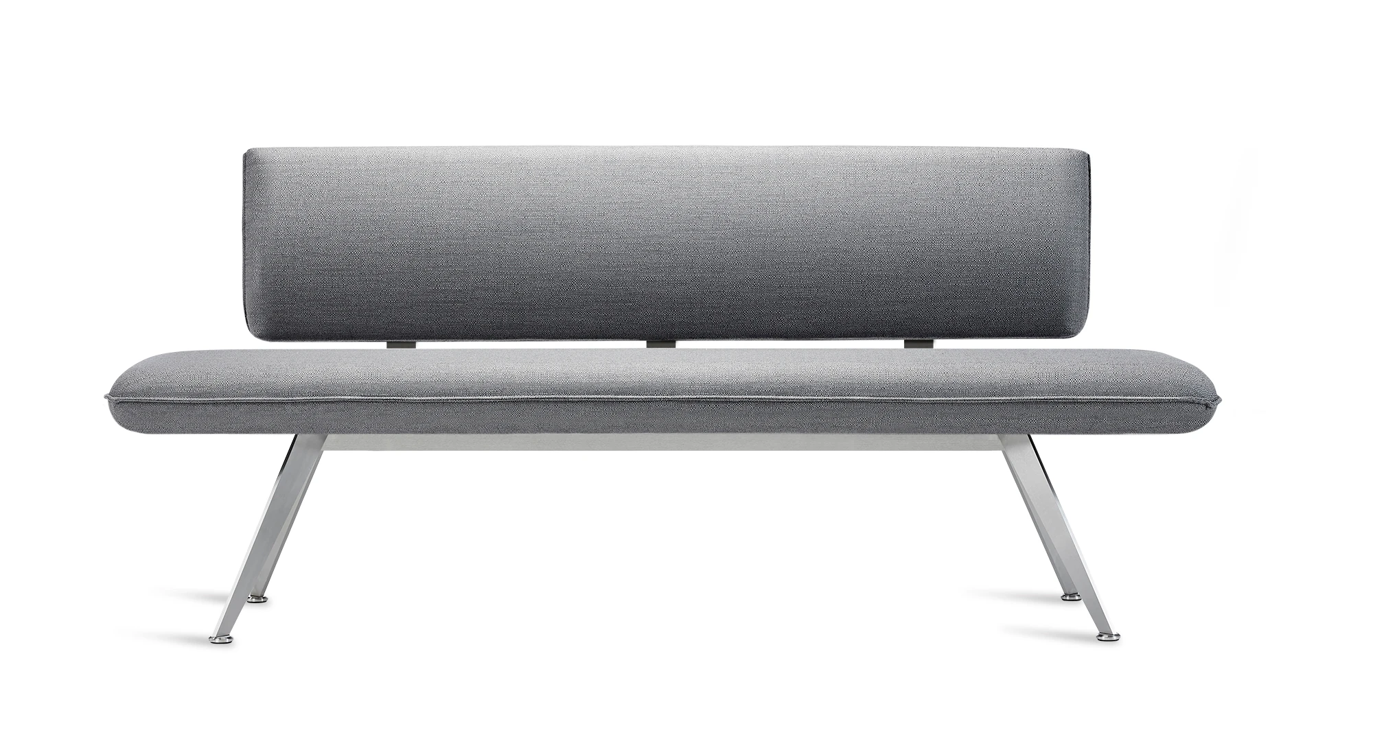 Hier verkaufte Konfiguration: Sitzbank mit Rückenlehne 150 cm, Edelstahlgestell mit dem Stoff Marengo (siehe unten). Abweichende Planungen auf Anfrage möglich – Wir beraten Sie gerne.
