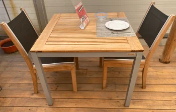 Die Platzierung der Tischbeine bildet ein weiteres Unterscheidungsmerkmal. Tische wie z.B. der Bistrotisch Basel von Schaffner oder Gloria aus unserem Produktsortiment verfügen über einen mittig platzierten Säulenfuss, was ähnlich wie bei Tischen mit einer Fussablage wie dem Gartentisch Rigi von Schaffner für maximale Beinfreiheit sorgt. Grössere Tische verfügen oftmals über in die Ecken platzierte Tischbeine, während innenliegende Tischbeine ausgefallene Designs ermöglichen – gute Beispiele dafür sind der Gartentisch Exes von Royal Botania oder der Gartentisch Forest von Fast Spa.