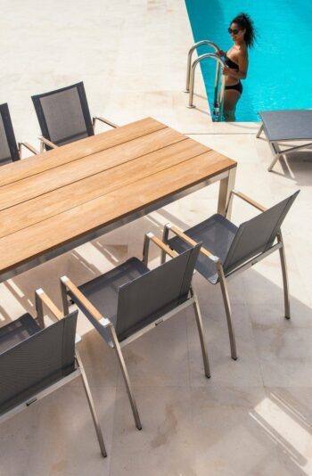 Die Kollektion YOKO von Rolf Benz ermöglicht Mahlzeiten unter freiem Himmel in traumhaft schönem Ambiente. Mit einer grosszügigen Länge von 220cm und einer Breite von 100cm bietet der Esstisch Yoko 250 reichlich Platz für gesellige Zusammenkünfte im Freien. Made in Germany.