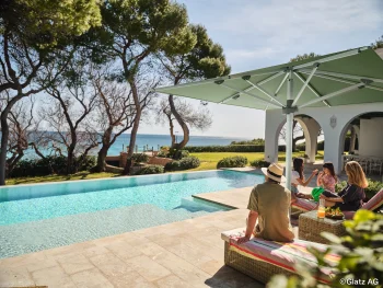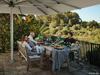 Gut ausgerüstet durch den Sommer – Mit einem Sonnenschirm der Schweizer Firma GLATZ AG, welche weltweit bekannt sind für ihre hochwertigen Schattenlösungen.