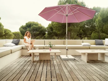 Der Freiarmschirm FORTANO wurde, wie alle Schirme der F-Linie, speziell für die Verwendung an windexponierten Standorten konzipiert. Dies macht ihn zu einem windfesten Begleiter mit einem vorteilhaften Preis-Leistungs-Verhältnis. Swiss Design.